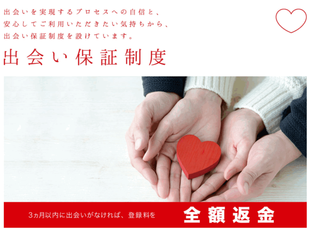 パートナーエージェントの出会い保証制度は、入会から3ヵ月以内に紹介回答が双方YESとならなかった場合、登録料を全額返金してもらる制度です。