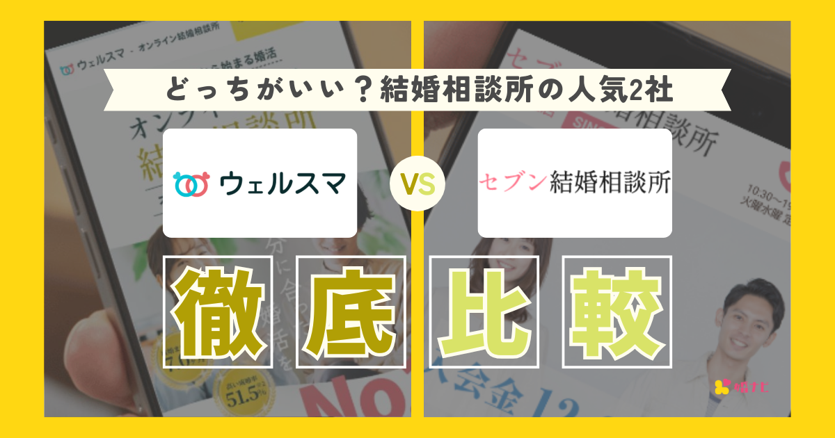 この記事では、ウェルスマとセブン結婚相談所の違いと共通点を、料金、サポート体制、成婚実績など主に3つの観点から詳しく解説します。